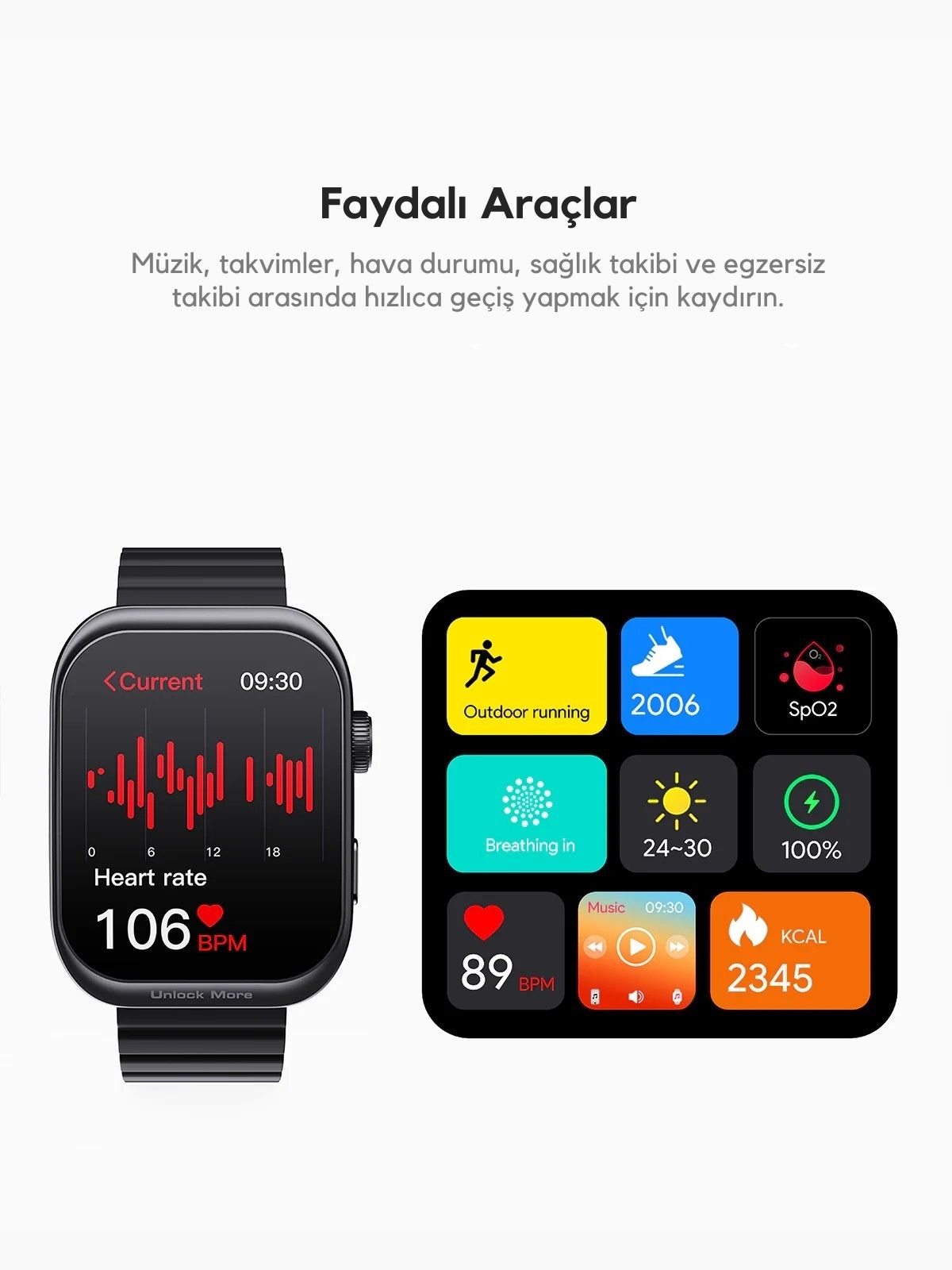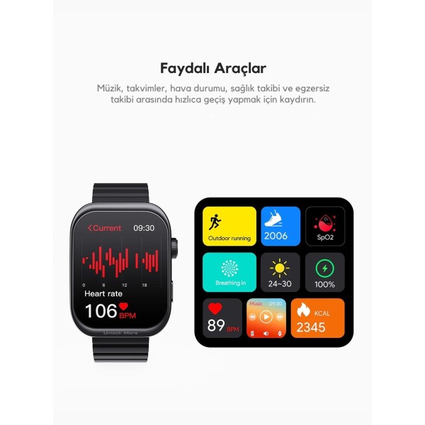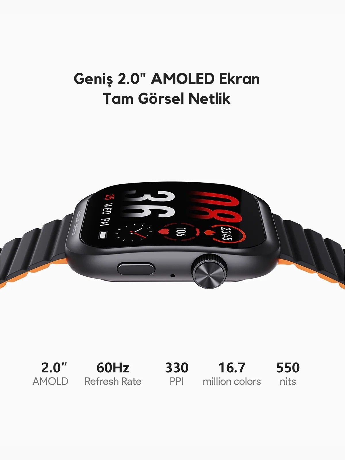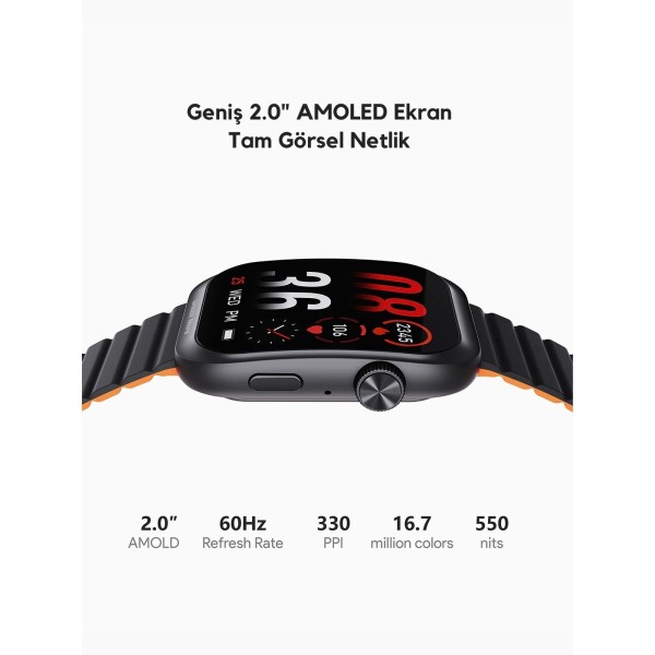 Ultra ince kavisli tasarıma sahip yepyeni 2.0 inç AMOLED ekran ile canlı görsellerin keyfini çıkarın. Bu yüksek çözünürlüklü ekran, keskin, parlak renkler ve sürükleyici bir izleme deneyimi sunarak akıllı saatinizle her etkileşimi bir zevk haline getiriyor.